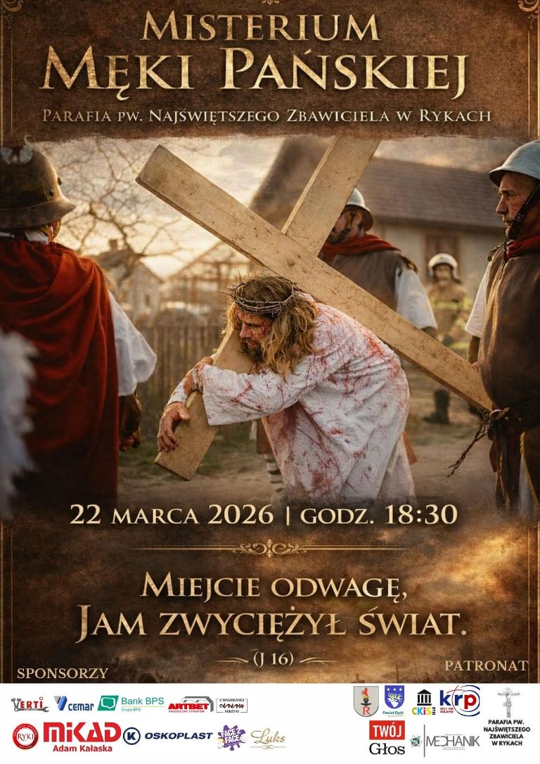 Misterium odbędzie się w niedzielę, 22 marca i rozpocznie o godzinie 18:00. W wydarzeniu weźmie udział ponad 150 aktorów - amatorów. To efekt zaangażowania nie tylko parafian z Ryk, ale także gości z parafii Drelów (miejscowość Żarocin), którzy współtworzą to przedsięwzięcie. Imponująca jest także skala przygotowań scenograficznych i kostiumowych. Jedna z firm uszyła profesjonalne stroje, a zakłady metalurgiczne przygotowały rekwizyty takie jak miecze, elementy uzbrojenia, tarcze i hełmy. Głównym inicjatorem i organizatorem misterium jest ks. Sławomir Ochnik, wikariusz parafii w Rykach.