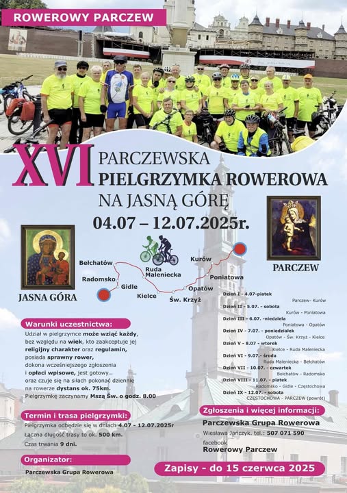 Parczewska Pielgrzymka Rowerowa na Jasną Górę wyruszy w piątek, 4 lipca. Rozpocznie ją Msza święta sprawowana o godz. 8.00 w kościele św. Jana Chrzciciela w Parczewie. Zanim rowerzyści pokłonią się Matce Bożej Częstochowskiej, pokonają dystans ponad 500 kilometrów i odwiedzą takie miejsca jak Sanktuarium św. Krzyża, Sanktuarium św. Ojca Pio czy Bazylika Wniebowzięcia NMP w Gidlach. W sobotę, 12 lipca, będą wspólnie modlić się na Eucharystii z wszystkimi pątnikami XX Jubileuszowej Ogólnopolskiej Pielgrzymki Rowerowej na Jasną Górę.- Tegoroczna grupa pielgrzymów liczy 40 osób. Większość uczestników to osoby z naszego dekanatu, chociaż chętnie jeżdżą z nami również rowerzyści z Lublina, Łęcznej, Radzynia Podlaskiego, czy Białej Podlaskiej. Wszyscy tworzymy pielgrzymkową wspólnotę. W grupie panuje rodzinna atmosfera, razem się modlimy, przygotowujemy posiłki. Każdy dzień rozpoczynamy Mszą świętą w miejscowości, w której zatrzymujemy się na nocleg. Po Mszy wspólnie przygotowujemy śniadanie i wyruszamy na pielgrzymi szlak – mówi Wiesława Jańczyk, organizatorka pielgrzymki.