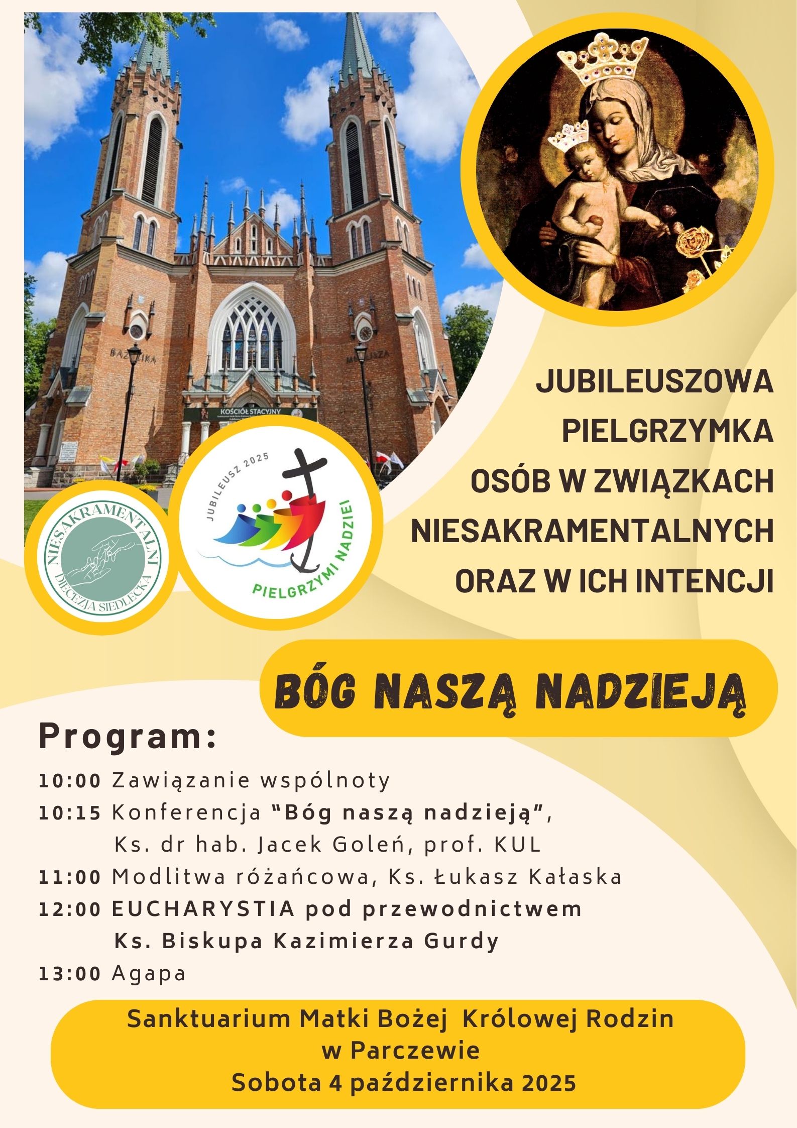 W Roku Jubileuszowym, który przeżywamy pod hasłem „Pielgrzymi nadziei”, Diecezja Siedlecka zaprasza na wyjątkowe wydarzenie duchowe — Pielgrzymkę osób żyjących w związkach niesakramentalnych oraz tych, którzy otaczają ich modlitwą. Wydarzenie to stanowi odpowiedź na konkretne wyzwania duszpasterskie i duchowe, przed którymi staje dzisiejszy Kościół. Coraz większa liczba wiernych żyjących w związkach niesakramentalnych domaga się obecności Kościoła, który — kierując się miłością Chrystusa — pragnie otoczyć ich troską, towarzyszeniem i modlitwą. To nie tylko kwestia duszpasterstwa dorosłych, ale także troski o dzieci wychowywane w tych rodzinach oraz o ich chrześcijańską formację.
