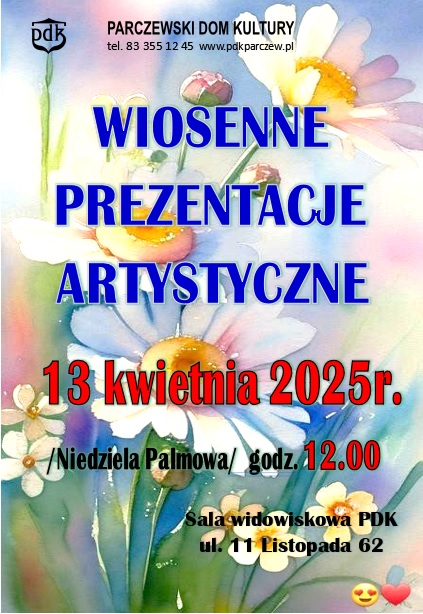 Wiosenne Prezentacje Artystyczne to inicjatywa Parczewskiego Domu Kultury. W wydarzeniu, od wielu lat, udział biorą dzieci z parczewskich przedszkoli i szkół oraz wychowankowie domu kultury. Jest to wyjątkowa okazja, aby młodzi artyści zaprezentowali swoje talenty zarówno wokalne, jak i taneczne.