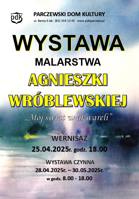 Natomiast wszystkich miłośników malarstwa galeria Parczewskiego Domu Kultury zaprasza do obejrzenia obrazów Agnieszki Wróblewskiej. Artystka pracuje w Szkole Podstawowej Nr 1 w Parczewie. Interesuje się przede wszystkim akwarelą i akrylem. Maluje dla przyjemności, a jej prace charakteryzuje spokój i nostalgia.
