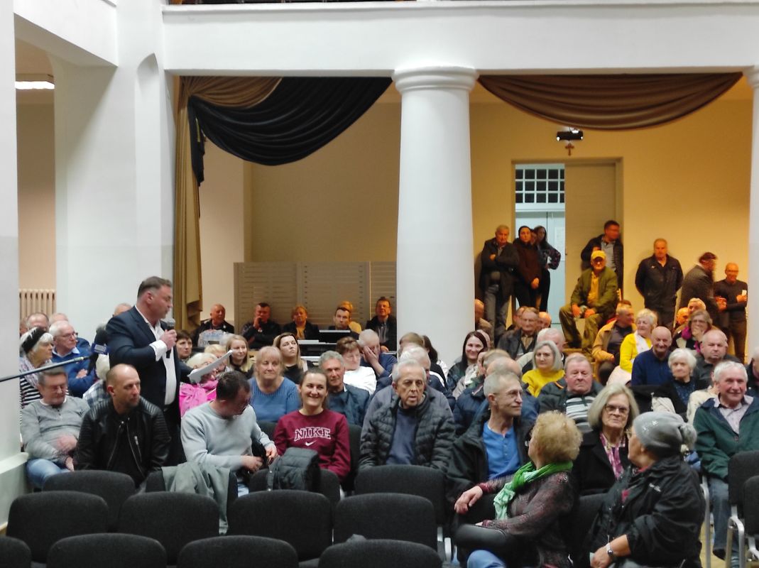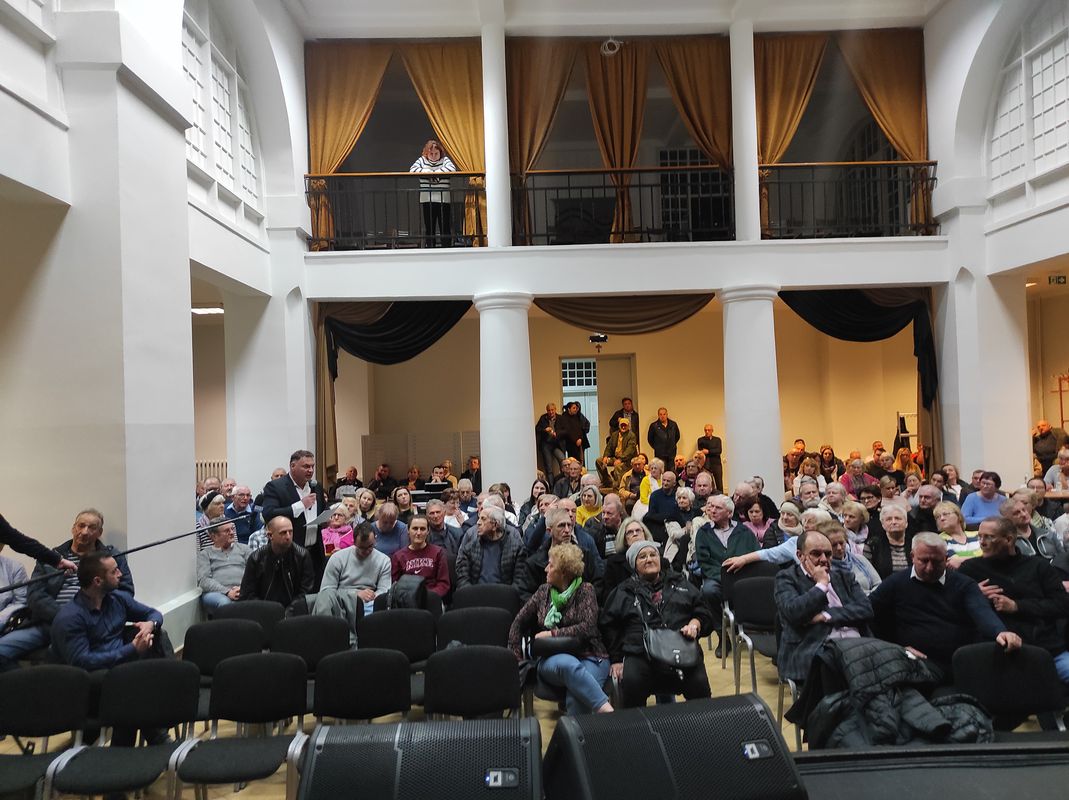 Emocje pojawiły się już na początku walnego, gdy na salę weszła ekipa telewizyjna. Jak wyjaśniał jej członek, zostali zaproszeni przez mieszkańców. Na pytanie, przez których, doprecyzował, że m.in. przez burmistrza. Przeprowadzono głosowanie i większością siedmiu głosów zdecydowano, że dziennikarze mogą pozostać na sali.