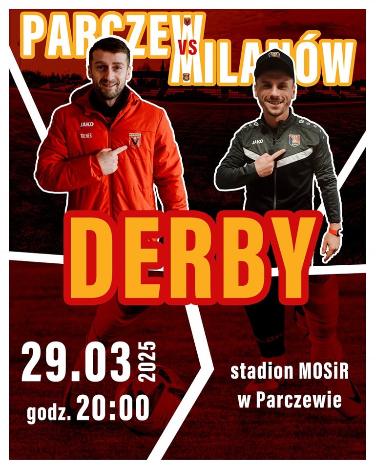 W najbliższą sobotę, 29 marca, na miłośników piłki nożnej czeka nie lada gratka. O godz. 20:00 na stadionie Miejskiego Ośrodka Sportu i Rekreacji w Parczewie zostaną rozegrane derby powiatu pomiędzy MKS Victoria Parczew a LKS AGROTEX Milanów.