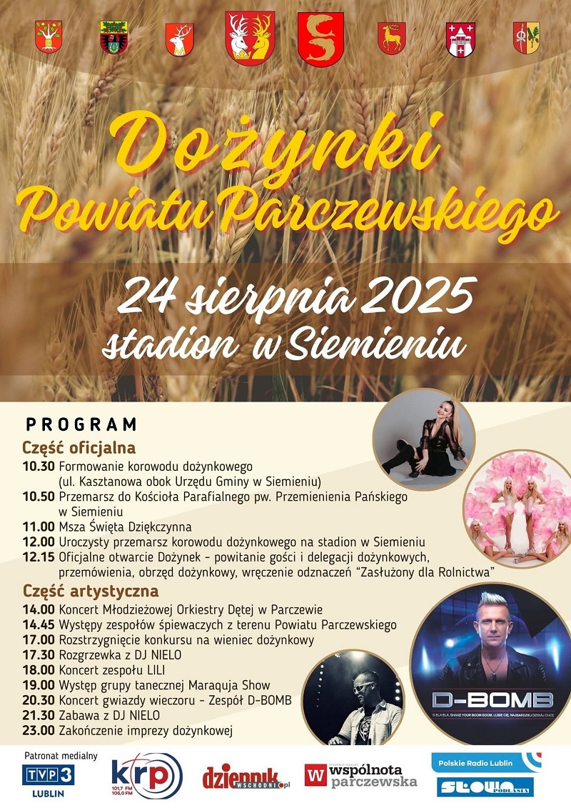 Wydarzenie odbędzie się w niedzielę, 24 sierpnia. Jak zawsze nie zabraknie wielu atrakcji dla dzieci i dorosłych. Oprócz występów zespołów śpiewaczych, konkursów, wręczenia odznaczeń „Zasłużony dla Rolnictwa”, swoje umiejętności kulinarne i artystyczne zaprezentują panie z Kół Gospodyń Wiejskich. Dla miłośników muzyki zaśpiewa gwiazda wieczoru zespół D-BOMB, a najwytrwalsi będą mogli wziąć udział w zabawie pod gołym niebem.Patronat medialny nad wydarzeniem objęło Katolickie Radio Podlasie oraz portal Podlasie24.pl