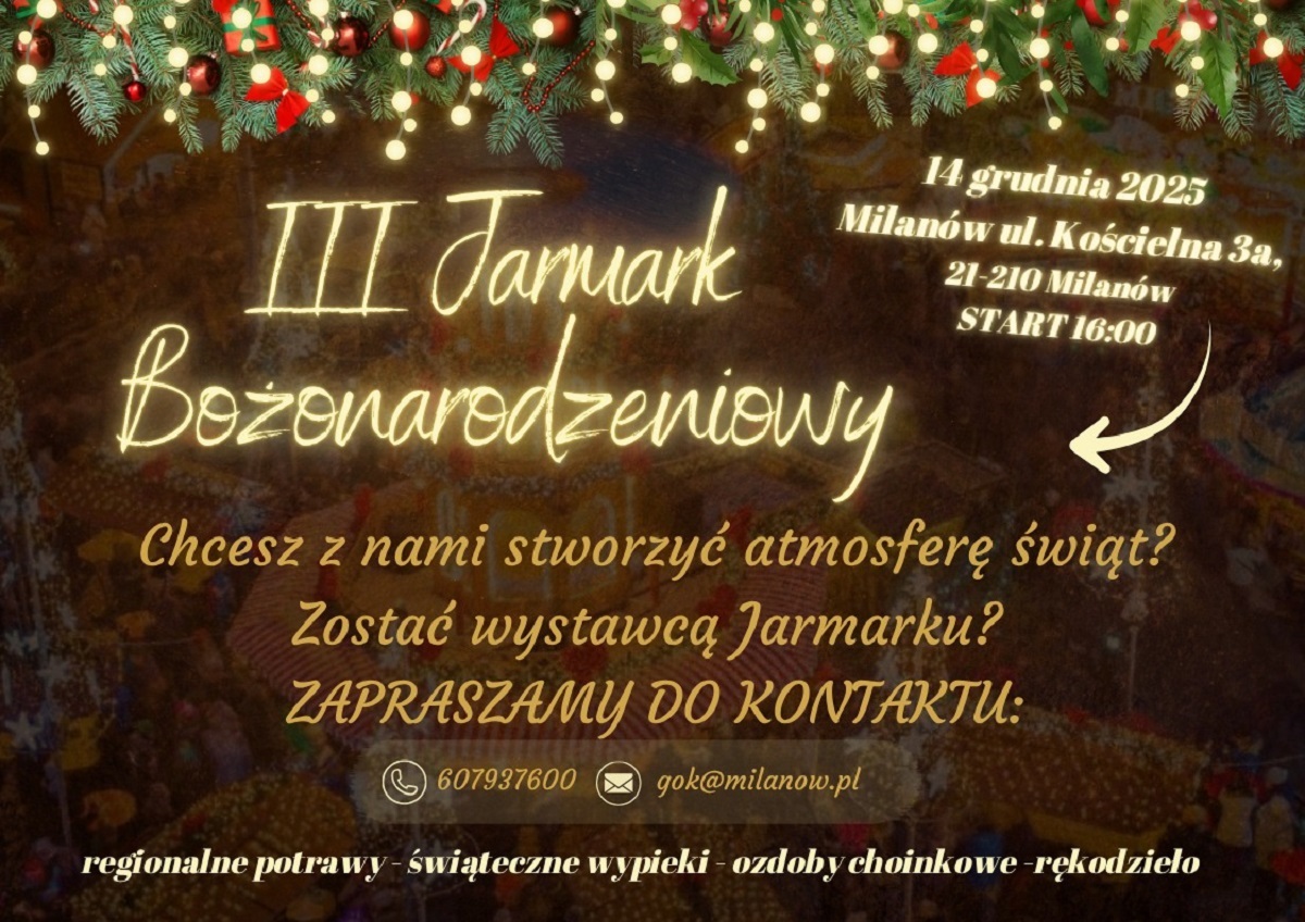 Ośrodki kultury w gminach Milanów i Jabłoń zapraszają na kiermasze w najbliższą niedzielę, 14 grudnia. Oprócz klasycznego rękodzieła będzie można podziwiać występy lokalnych artystów i uczniów miejscowych szkół oraz wziąć udział w quizach czy zabawach bożonarodzeniowych. Wydarzenie jest również zachętą do rodzinnego spędzenia czasu, a także poznania tradycji i zwyczajów świątecznych, które warto przekazać młodszemu pokoleniu.