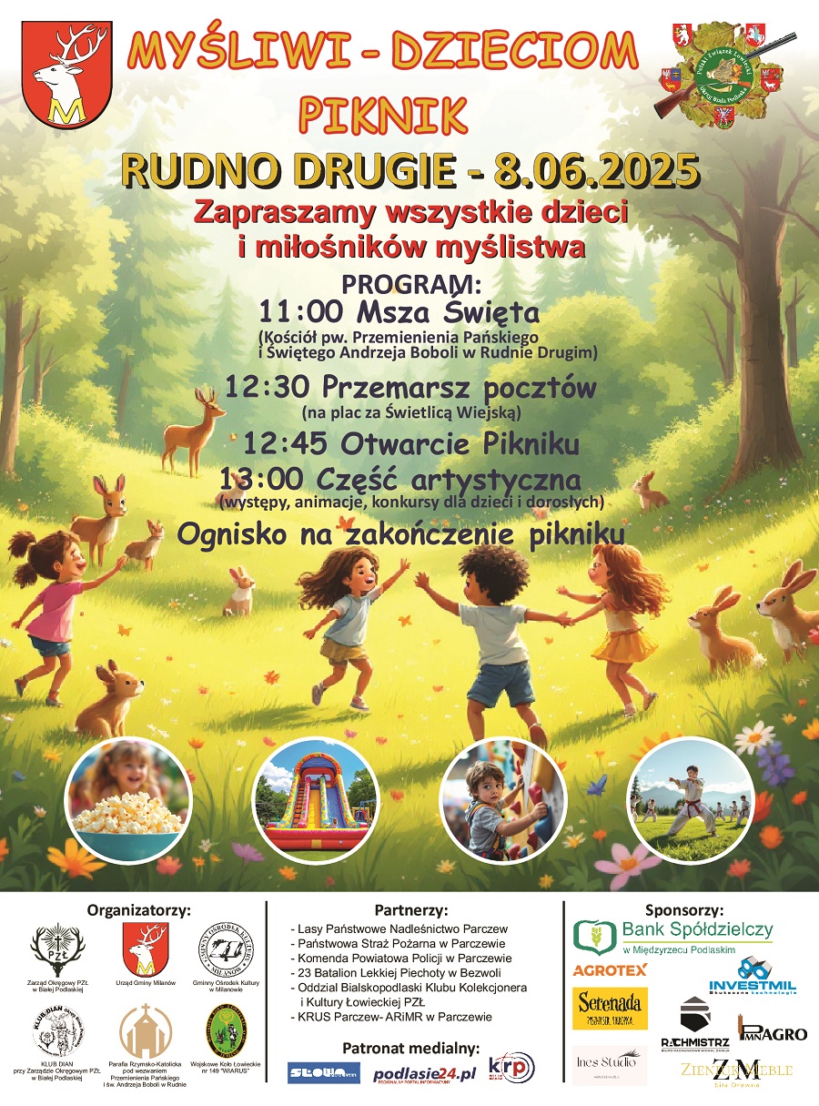 Z okazji radosnego święta, jakim jest Dzień Dziecka, w miejscowości Rudno organizowany jest piknik rodzinny pod hasłem „Myśliwi – Dzieciom”. Wydarzenie odbędzie się w najbliższą niedzielę, 8 czerwca i skierowane jest do najmłodszych oraz ich rodzin.