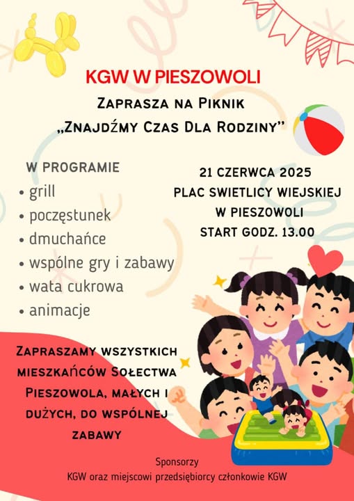 Pierwszym wydarzeniem jest piknik „Znajdźmy Czas Dla Rodziny” organizowany w sobotę, 21 czerwca, przez Koło Gospodyń Wiejskich w Pieszowoli w gminie Sosnowica. Impreza rodzinna odbędzie się na placu przy świetlicy wiejskiej, gdzie dorośli i dzieci będą mogli wziąć udział we wspólnych grach i zabawach.
