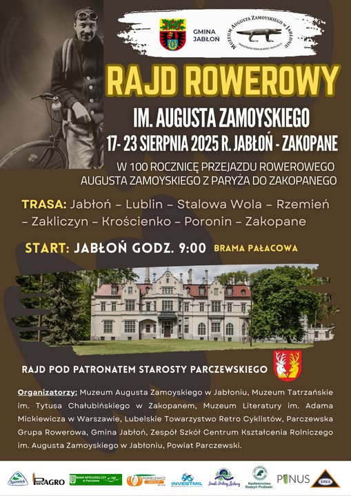 W tym roku przypada setna rocznica przejazdu na rowerze z Paryża do Zakopanego artysty rzeźbiarza Augusta Zamoyskiego. Aby upamiętnić ten spektakularny wyczyn sportowy Muzeum im. Augusta Zamoyskiego w Jabłoniu, przy współpracy z Parczewską Grupą Rowerową, organizuje przejazd na rowerach z Jabłonia, aby w niespełna tydzień dotrzeć do Zakopanego.