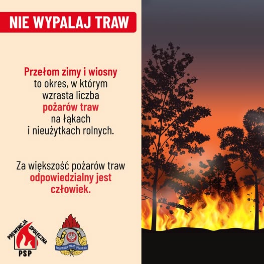 Wraz z nadejściem wiosny powraca niebezpieczny i wciąż spotykany proceder wypalania traw. Marzec i kwiecień to miesiące, w których strażacy odnotowują największą liczbę interwencji związanych z pożarami nieużytków i suchych łąk. Państwowa Straż Pożarna po raz kolejny apeluje o rozsądek i przypomina – wypalanie traw jest niebezpieczne i surowo zabronione.