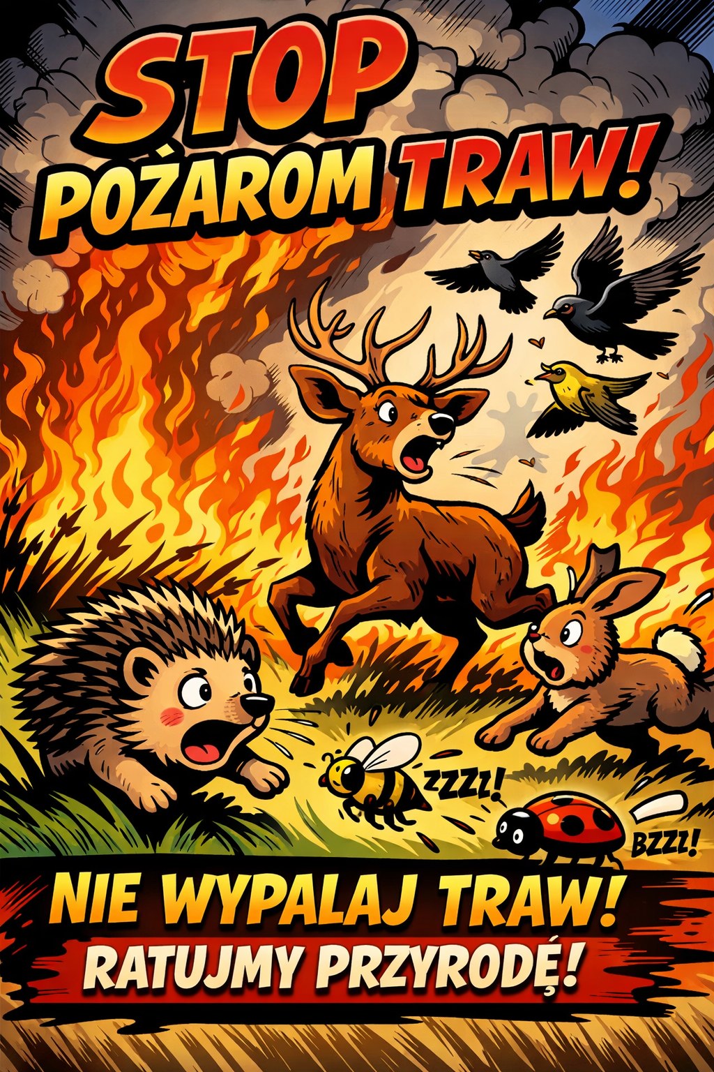 Pożary traw rozprzestrzeniają się bardzo szybko, szczególnie przy sprzyjających warunkach atmosferycznych, takich jak susza czy silny wiatr. Wystarczy chwila nieuwagi, aby ogień wymknął się spod kontroli. W wielu przypadkach płomienie przenoszą się na pobliskie lasy, pola uprawne, a nawet zabudowania mieszkalne, stwarzając realne zagrożenie dla życia i zdrowia ludzi oraz utrudniając pracę służb ratowniczych.Wypalanie traw niesie ze sobą poważne konsekwencje:
