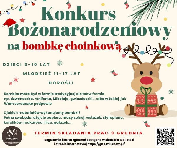 Gminna Biblioteka Publiczna w Milanowie ma dwie propozycje w postaci konkursu bożonarodzeniowego i recytatorskiego.