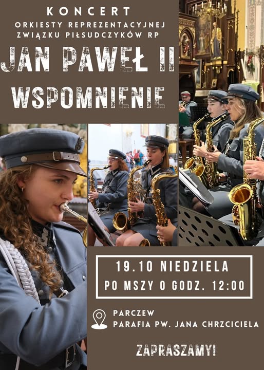 Orkiestra Reprezentacyjna Związku Piłsudczyków RP zaprasza na niezwykły koncert pt. „Jan Paweł II. Wspomnienie”. Utwory będzie można usłyszeć w niedzielę w Bazylice Mniejszej w Parczewie oraz w Gminnym Ośrodku Kultury w Milanowie o godz. 18:00.